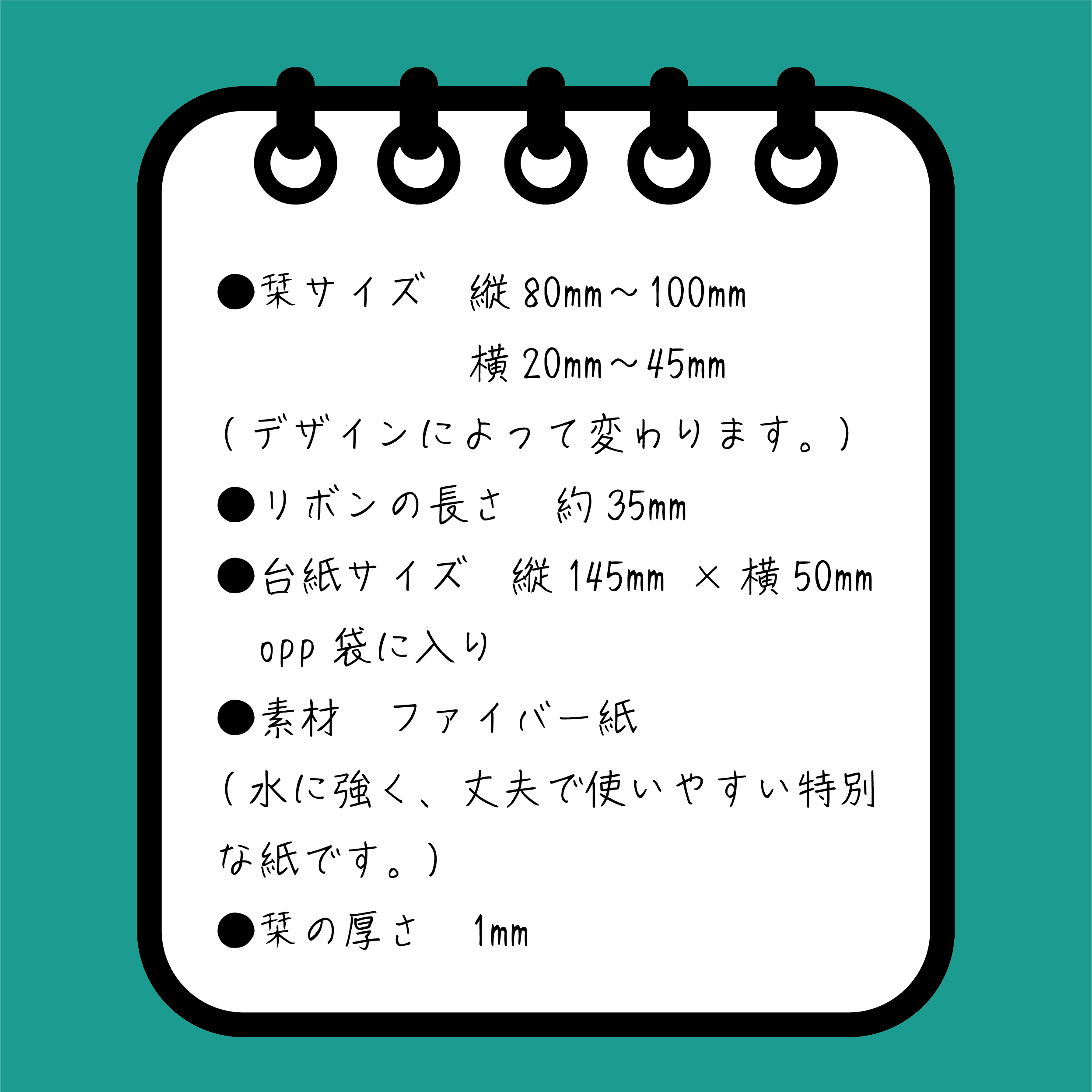 ●台紙サイズ:縦145mm×横55㎜ OPP袋入り