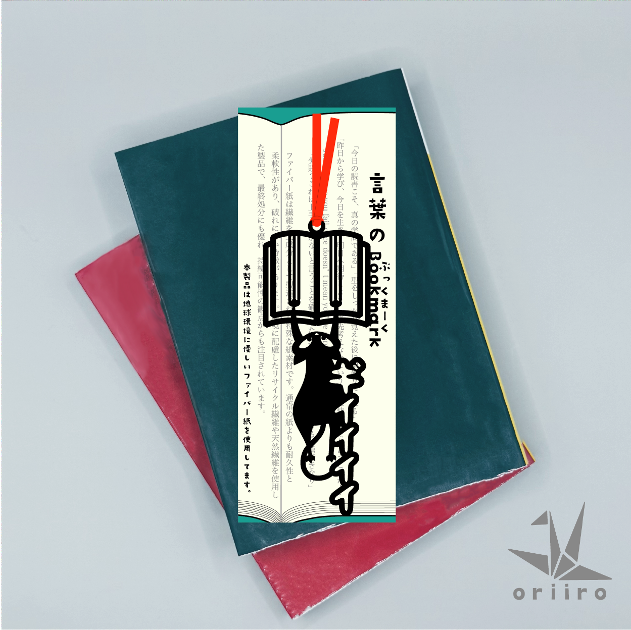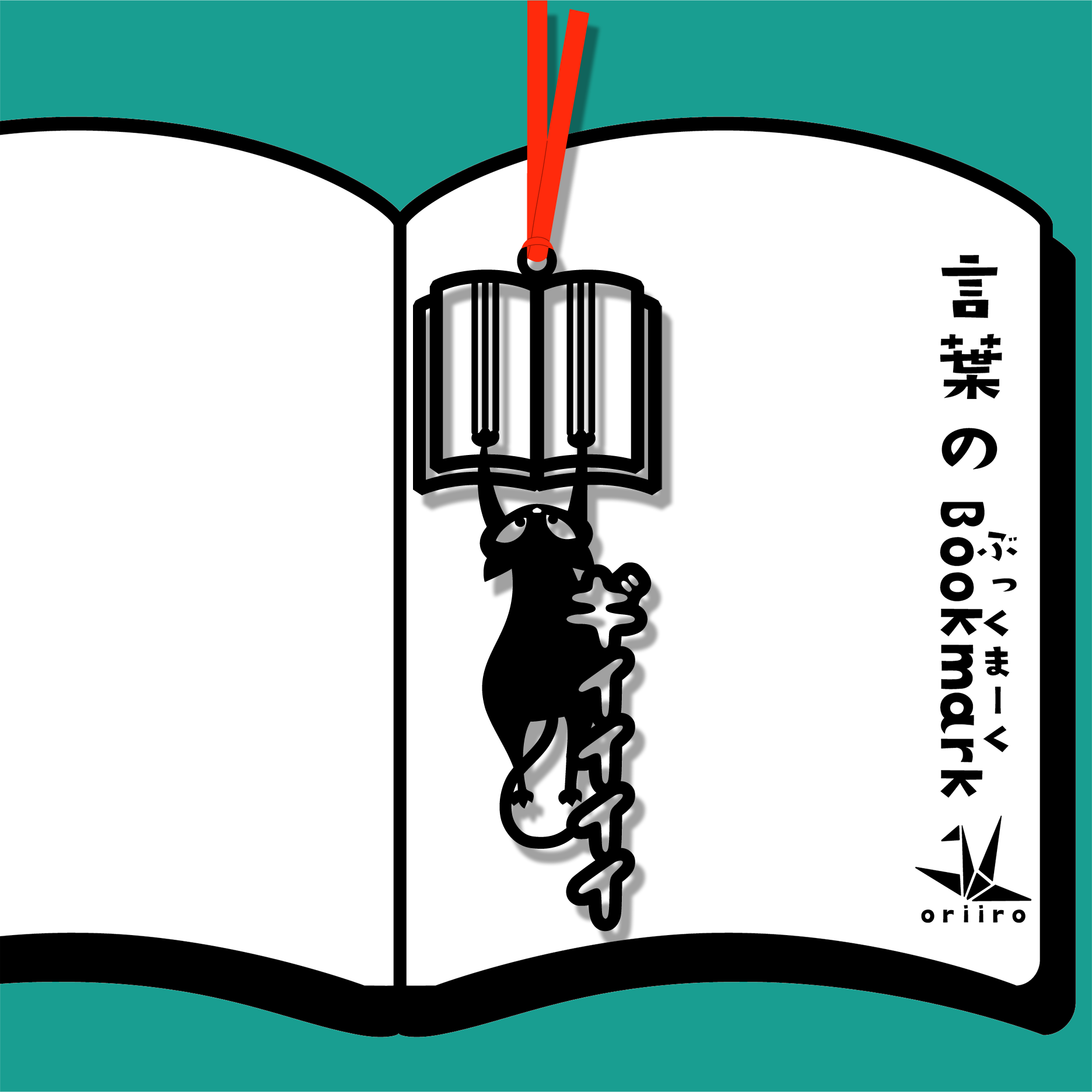 猫が本を思いきり「ギイイイッ!」と引っ掻く姿をそのまま切り抜いた、遊び心全開のしおりです。
