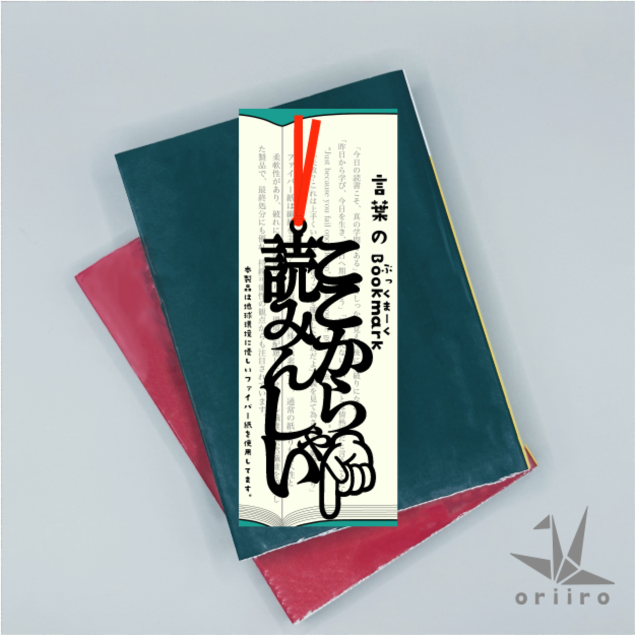 「ここから読みんしゃい」は、博多弁で「ここから読みなさい」という意味を持つ、親しみやすく、温かみのある言葉のしおりです。博多の方言の魅力を感じさせるフレーズと共に、指マークがデザインされており、読書の始まりを楽しく、軽やかな気持ちでサポートしてくれます。読書の途中でこのしおりを見つけるたびに、博多の温かい人々の優しさを感じることができ、心がほっこりします。