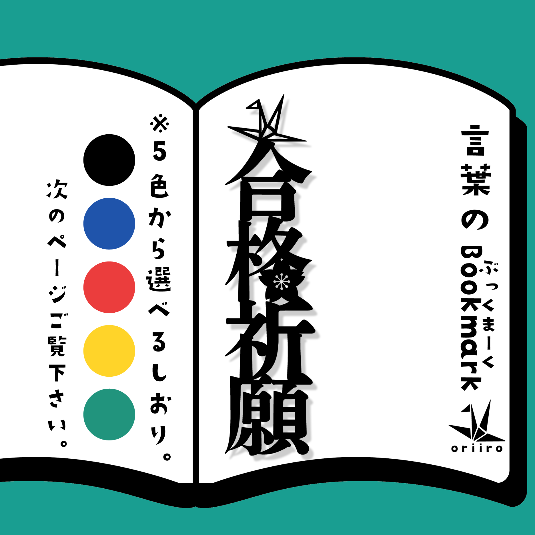 「合格祈願」は、受験や試験、目標達成を応援する特別なしおりです。折鶴のシルエットが、願いを込めて折り重なる姿を象徴し、あなたの努力を後押しします。心を込めた応援のメッセージを、毎日の勉強や試験前のリラックスタイムに添えて、合格への道を照らしてくれます。